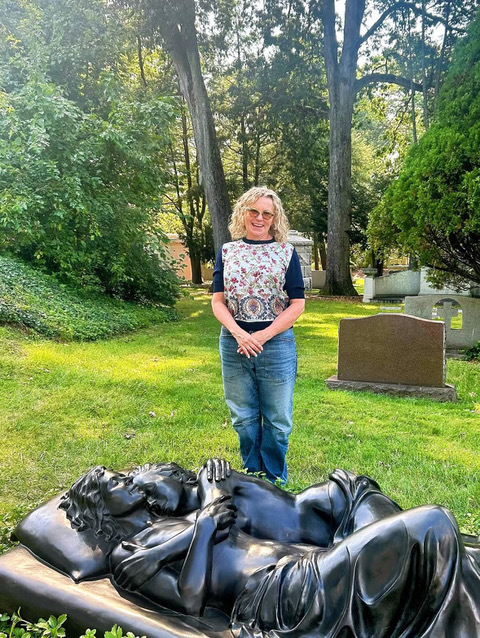 A larger-than-life sculpture portrays the artist who sculpted it, Patricia Cronin, and her wife, artist Deborah Kass. It was placed at Woodlawn Cemetery 20 years ago.